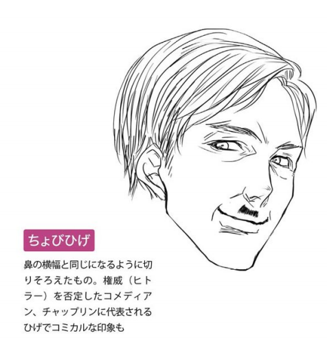 和鼻子的宽度一样剪齐的东西。权威(希特勒)的喜剧演员,以卓别林为代表的胡子,给人滑稽的印象