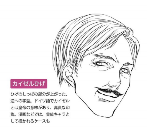 https://p1-tt.byteimg.com/origin/pgc-image/e223aaaaf3454704bcce9340ca22e98f?from=pc胡子部分向上相反的字型。在德语中,“卡泽尔”有皇帝的意思,给人高贵的印象。在漫画中,也有作为贵族角色来描绘的情况