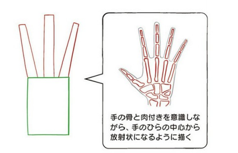 一边意识到手上有骨头和肉,一边从手掌中心放射状地描绘