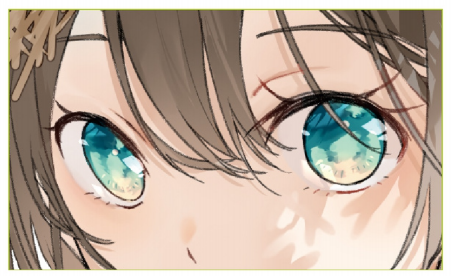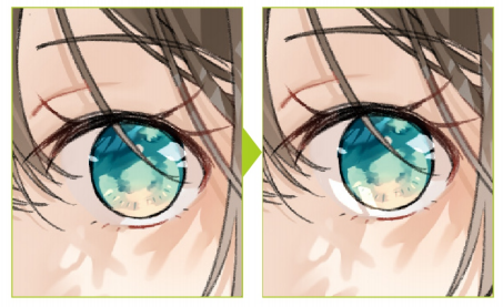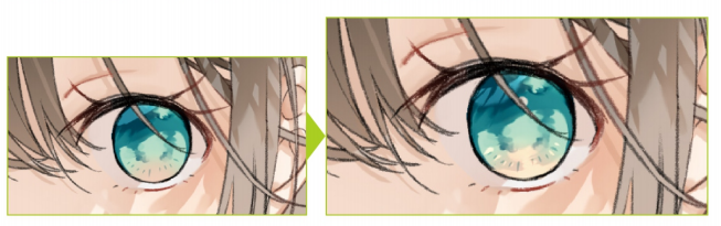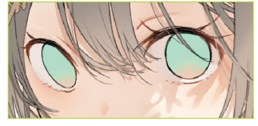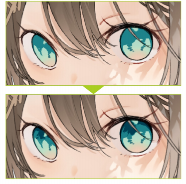 合成模式[相加(发光)],在暗眼部分画上光彩。[相加(发光),即使是暗颜色也可以看到发光(右图)。