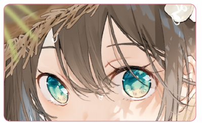 调整光彩。在眼睛的上部用明亮的颜色描绘反射光1。接着新建一个图层,将合成模式设为[相加(发光)],在涂了3号影的基础上画小一圈的光,加上有透明感的反射光2然后用橡皮擦稍微削反射光2,新建一个光彩层。
