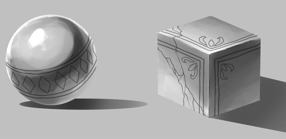 https://p6-tt.byteimg.com/origin/pgc-image/a7cfd67f3f0b4fc1ba8efcbb40bd69ae?from=pc下一步是雕刻图案。创建一个乘法层并使用中性灰色绘制图案。通过使用常规图层并将不透明度设置为较低的水平,可以实现类似的结果。确保图案遵循对象的形状。您也可以使用此方法在岩石和大理石碎片中创建浅裂缝。