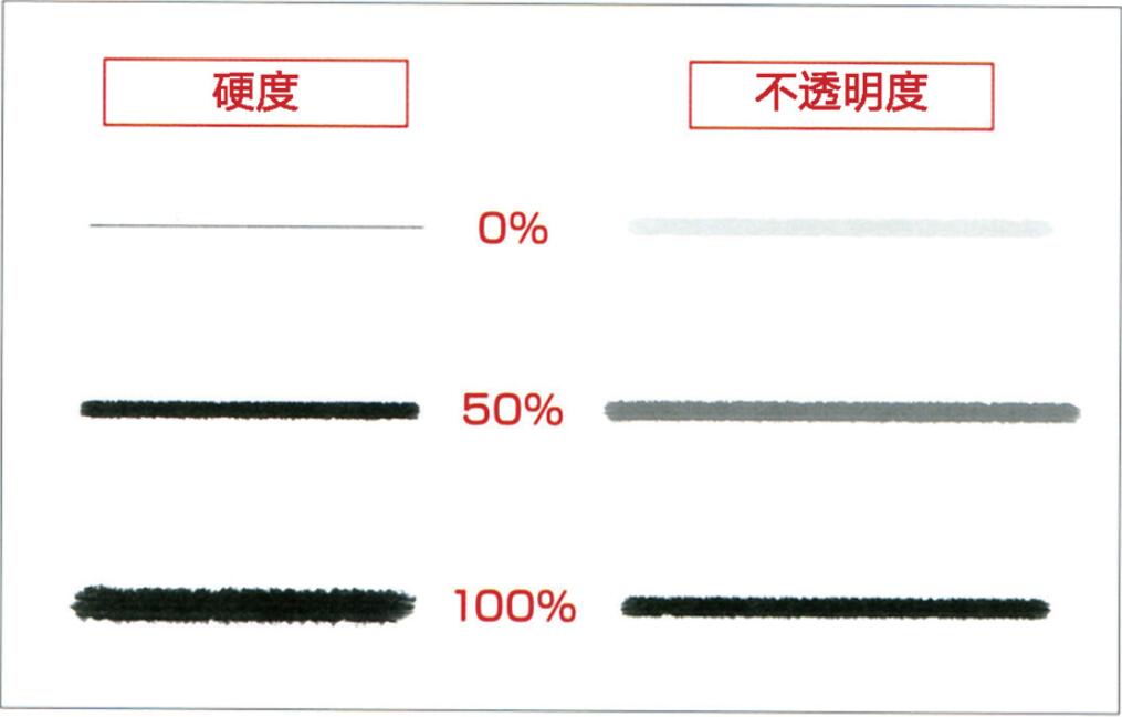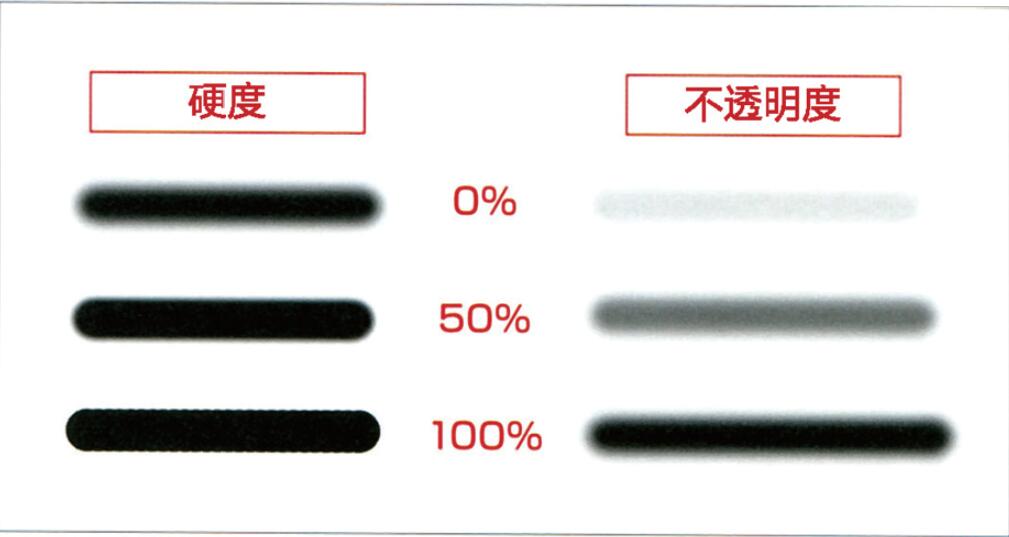 在【硬度】栏将不透明度设为100%,在【不透明度】栏将硬度设为100%。
