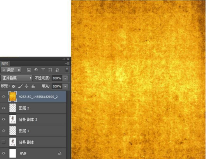 4、把选好的纸张纹理图层设置为最上面的图层,并将其图层属性改为“正片叠底”。
