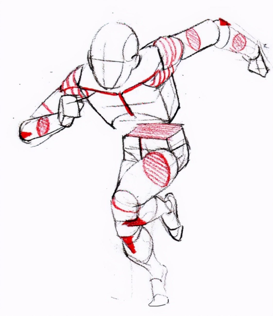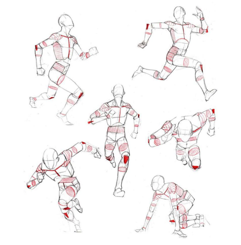 用几何形体表现出人体构造和跑姿的位置