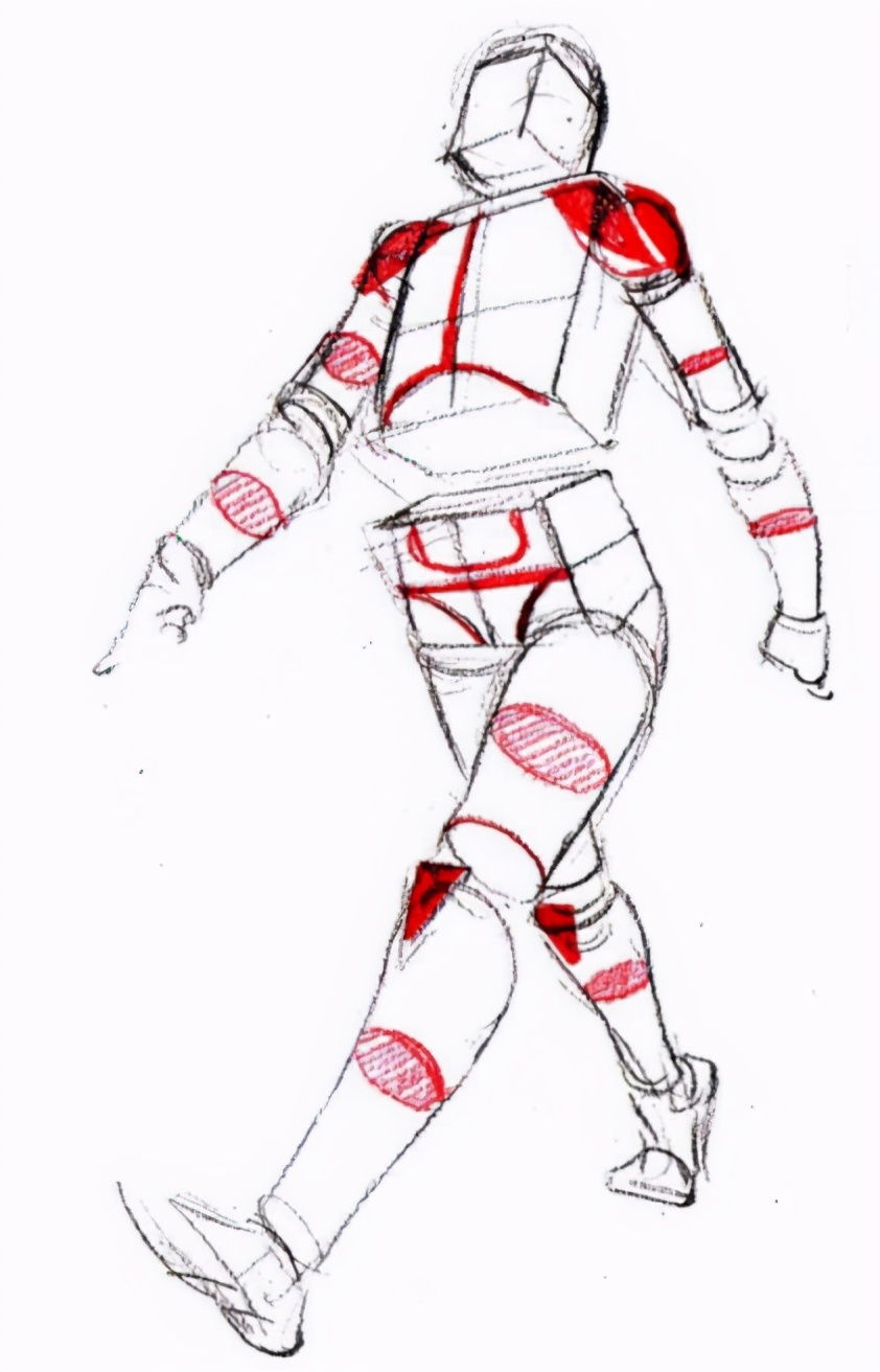 画走姿时要注意四肢的圆柱体的摆动关系,多注意圆柱体的圆切面和脊椎的扭动关系。