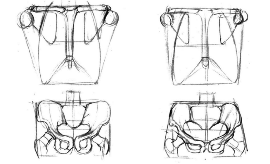 男性与女性的身型,比较明显的区别就是肩和胯的比例。男性的肩宽、胯窄;女性的肩窄、胯宽。这种生理构造区别的原因简单来讲就是男人的力气大,要干较重的活。女人则力气相对较小,比较柔弱,干轻活。