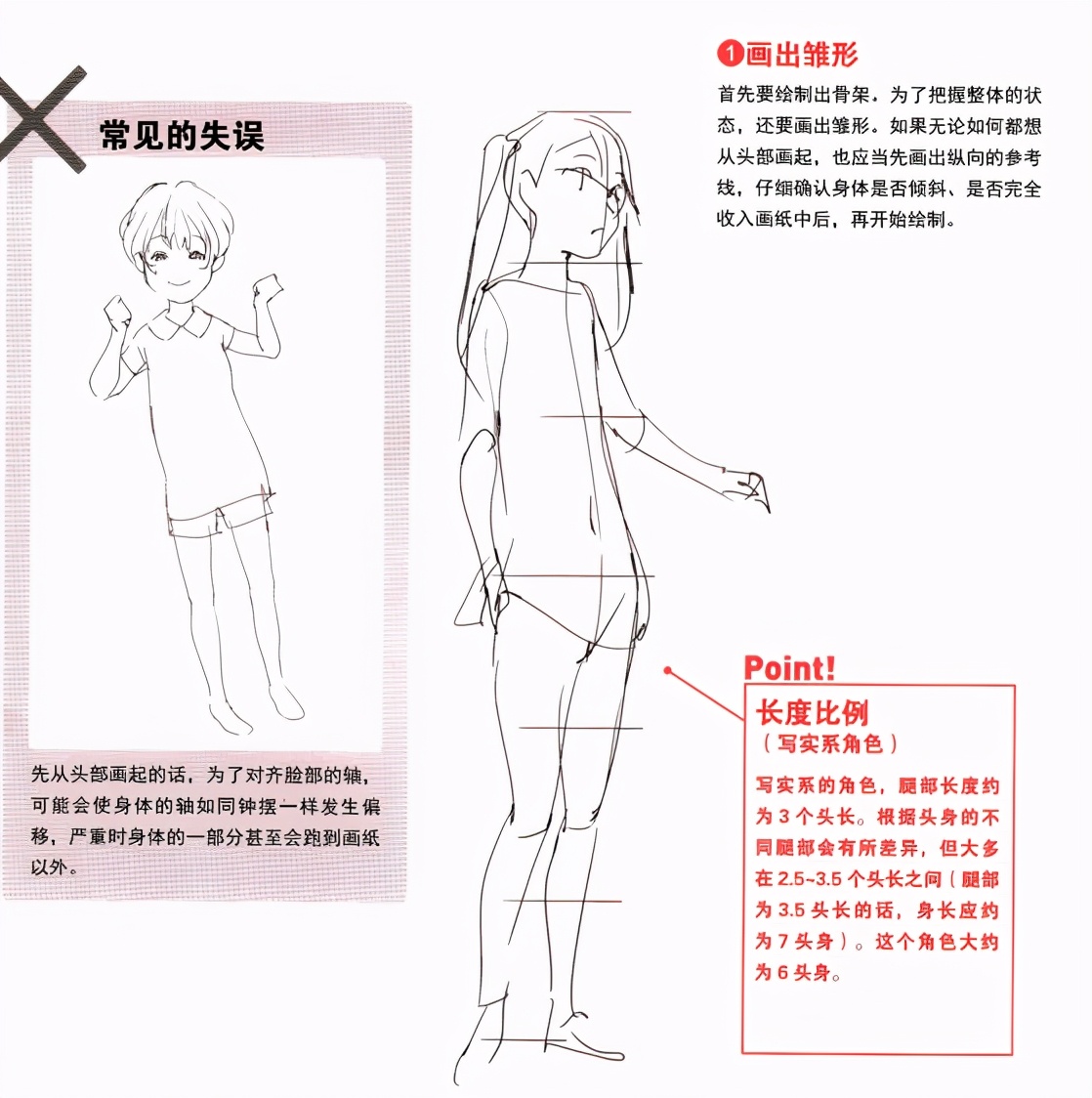 答:不要直接描出身体的轮廓线,先仔细确定正中线后再来绘画