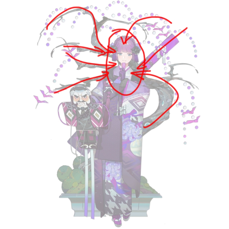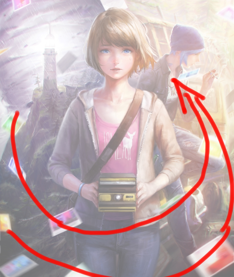 就会发现,全部都指向了视觉中心的头部位置,这就是画师想要我们第一眼就看到的。
