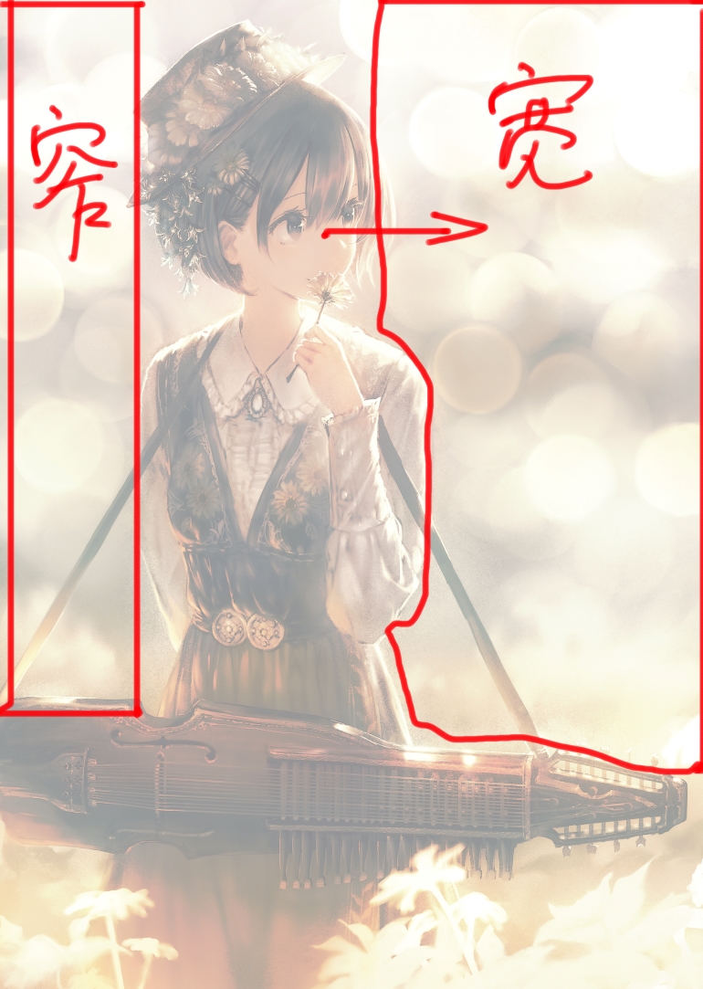 顾名思义,就是我们设计画面的时候,人物面向的位置,一般多留一些空位往往会更好。比如这张小姐姐的美图