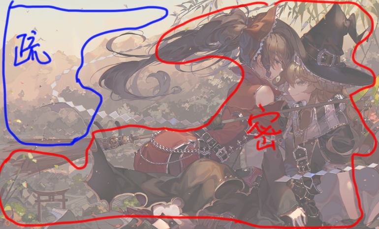 具体来说,就是——密的地方周围要适当放空,空的地方周围适当加密