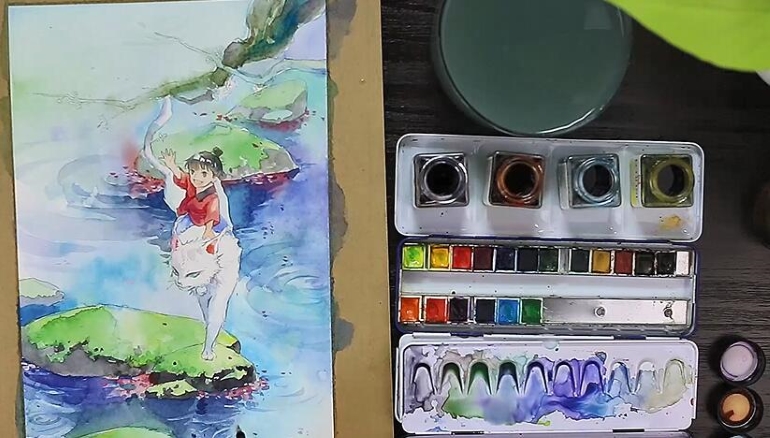 1、水彩上色