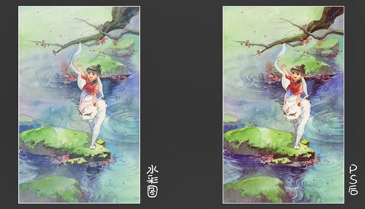 (1)水彩大的效果差不多了,为了使画面更完善精美,可以将这张水彩图导入电脑中,利用数字绘画来进行进一步的完善。