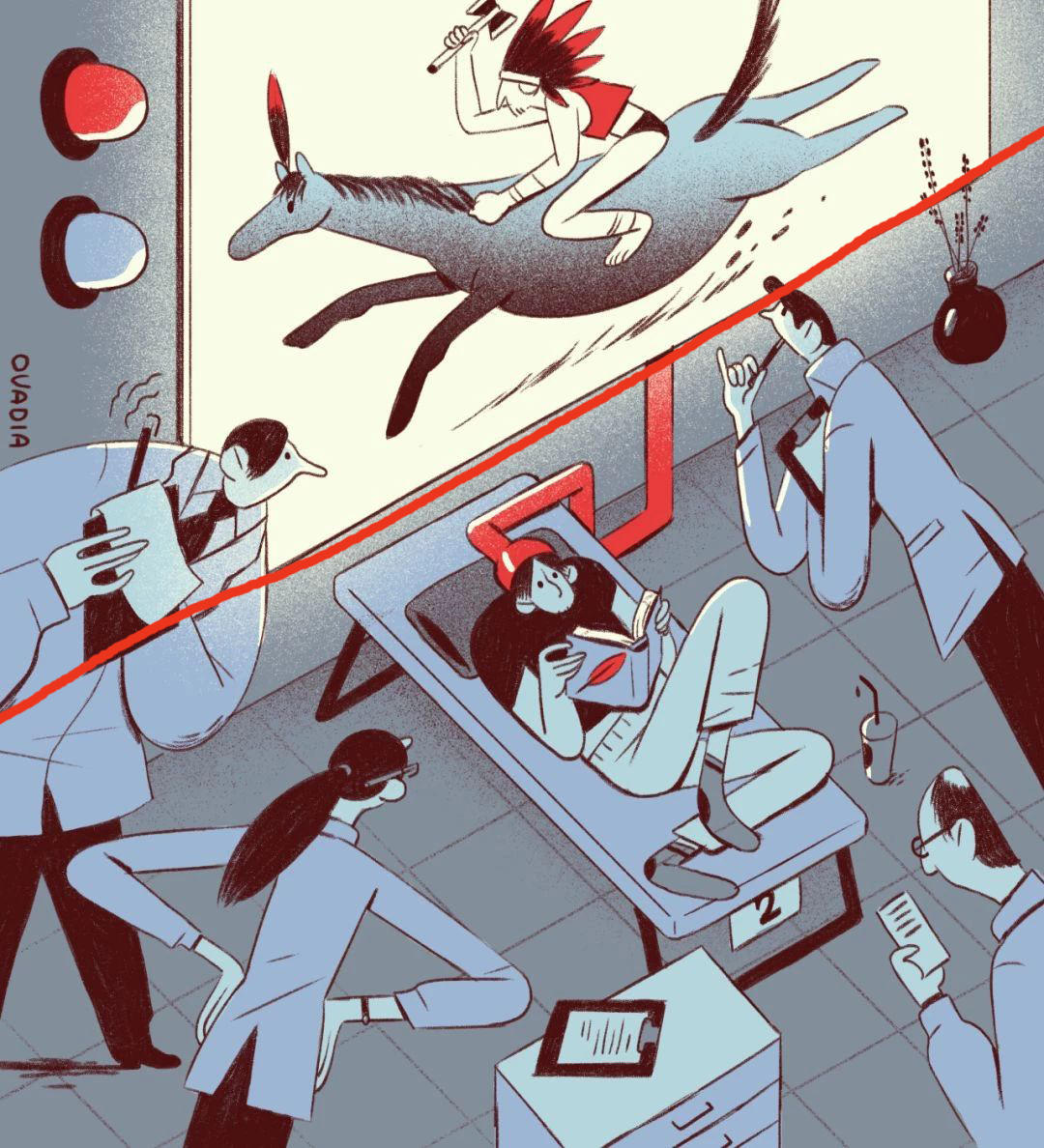 这是一幅大家在研究被测验的人在看书时候脑中出现的画面。