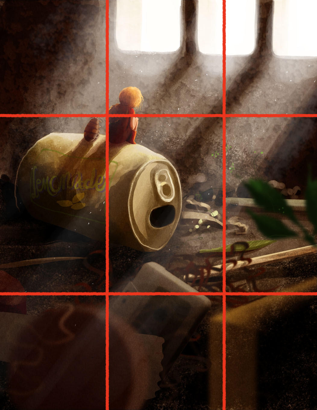 很有故事性的场景,加了一些叶子等在画面打破这个“平”