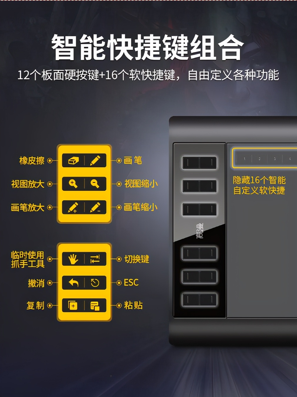 很多人习惯了用键盘,但是对于新手而言,去记键盘上组合的快捷功能,很繁琐。所以数位板上快捷键越多,对新手就是很友好。