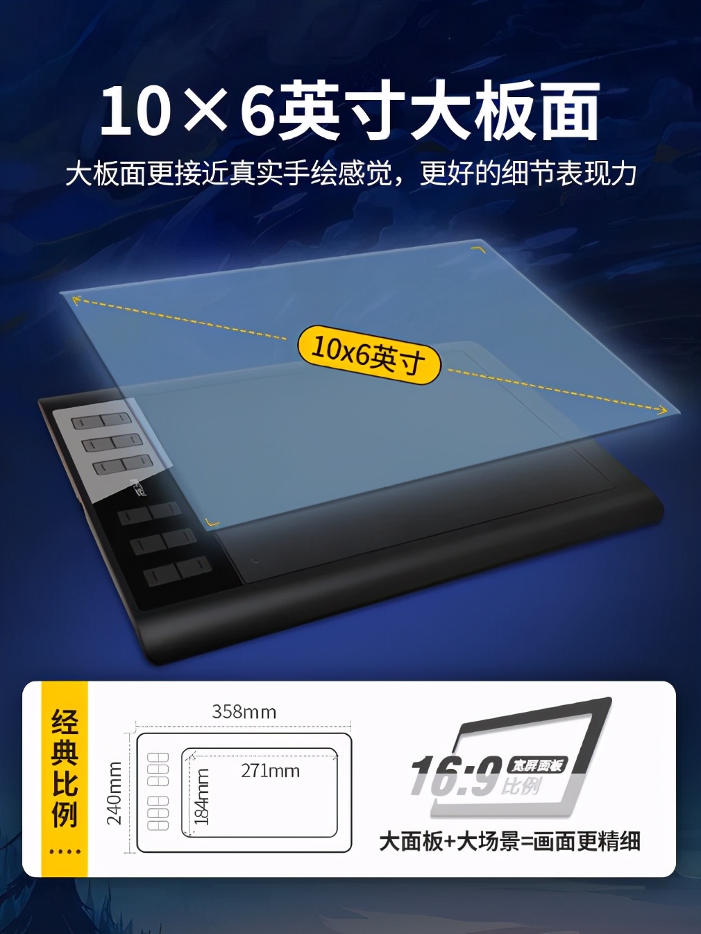 高漫1060Pro数位板和M6数位板,属于大号。