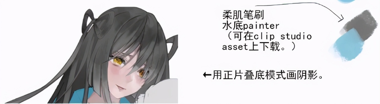 柔肌笔刷,水底painter(可在clip studioasset上下载。)↓用正片叠底模式画阴影。
