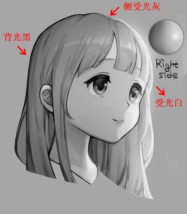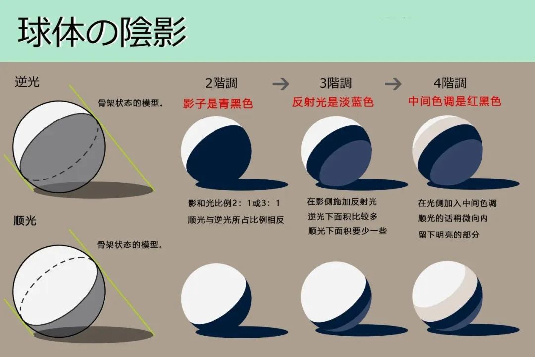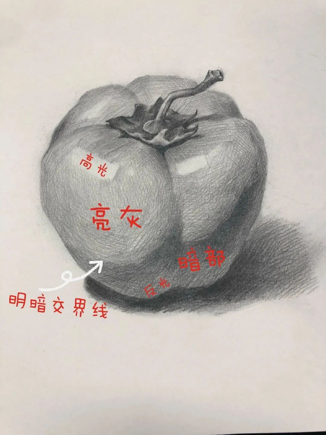 五大调子:受光面到背光面的基本变化规律,五大调包括高光、亮灰、明暗交界线、暗部、反光。