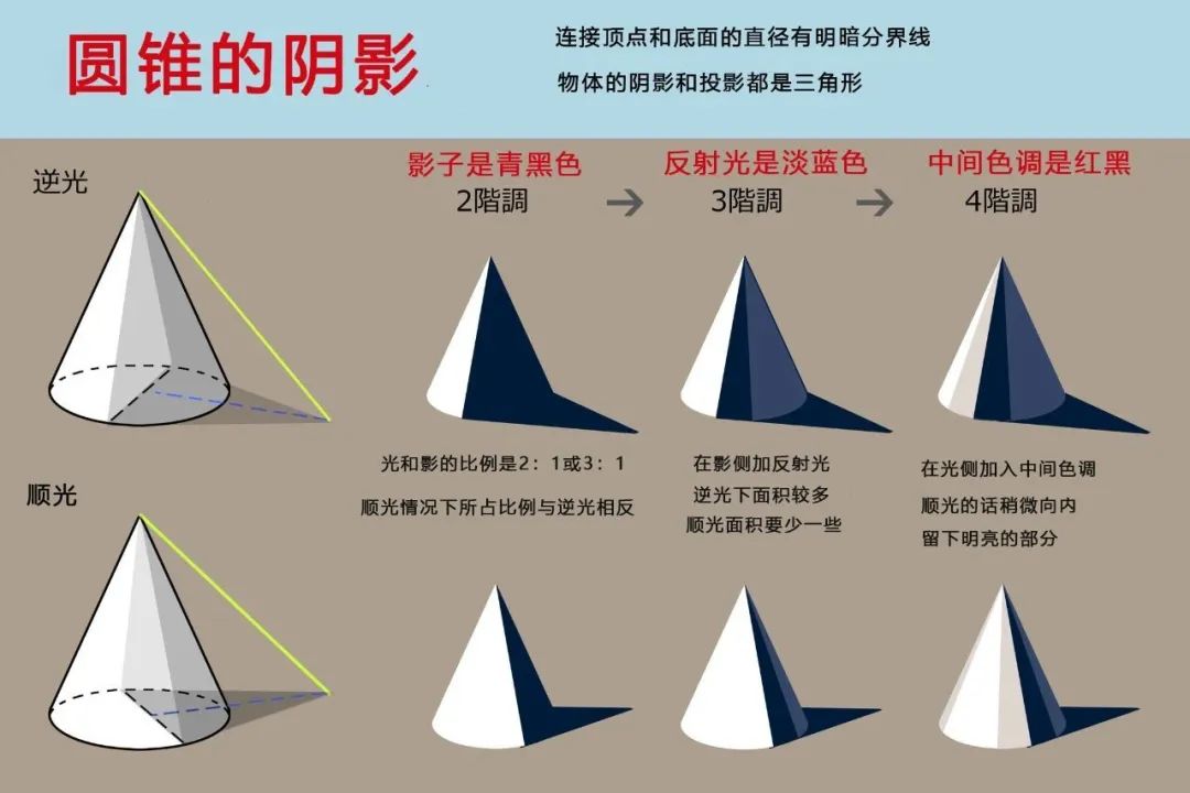 常见的几何体有球体、圆柱、圆锥等,当它们受光时,会产生一系列有序、可预测的色调。