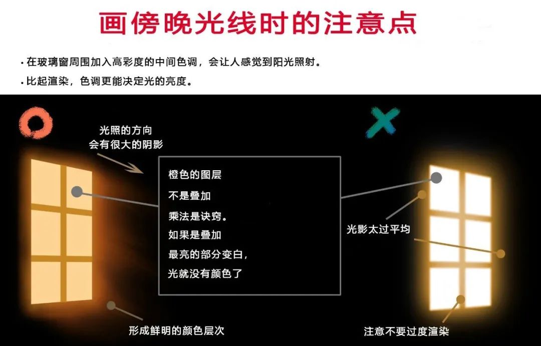 然后我们来看看黄昏下,光透过窗户时要注意的点