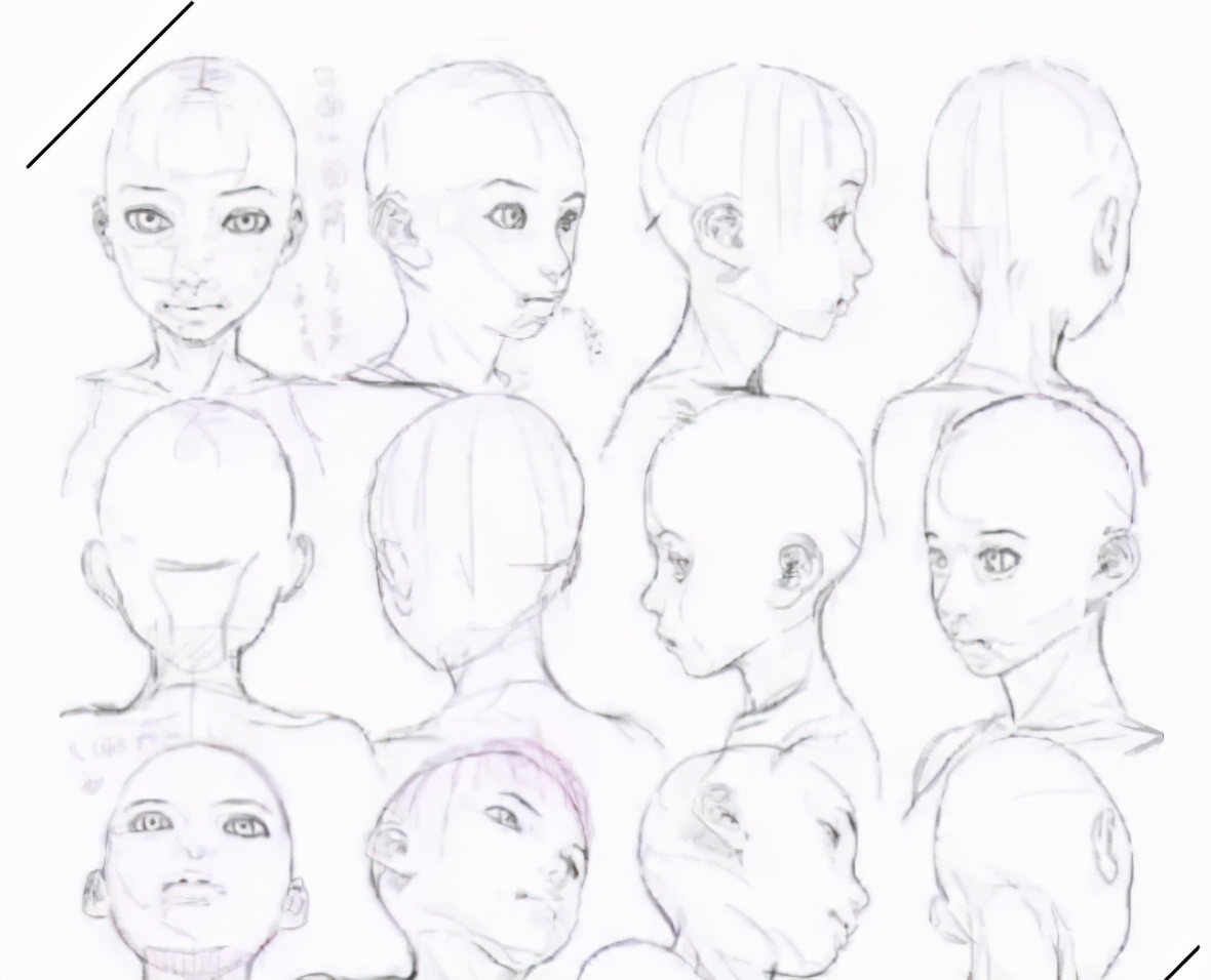 对于提高头部结构的绘画,我们应多做以下的绘画练习——在不同角度下,五官之间的遮挡和变形关系。