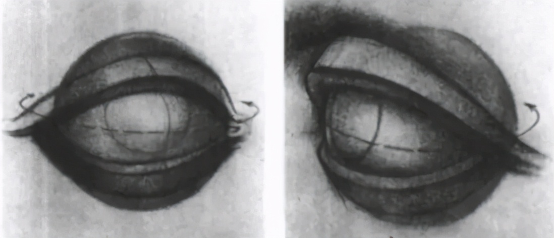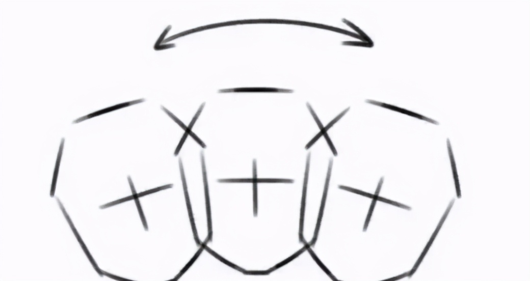在正脸面对画面的情况下,眼睛的外轮廓像是一个椭圆形的球体,但是在45°角面对画面时,眼睛的外轮廓更像一个三角形。这是因为眼睛本身也是一个三维立体的结构,在不同的角度会呈现不同的形态。