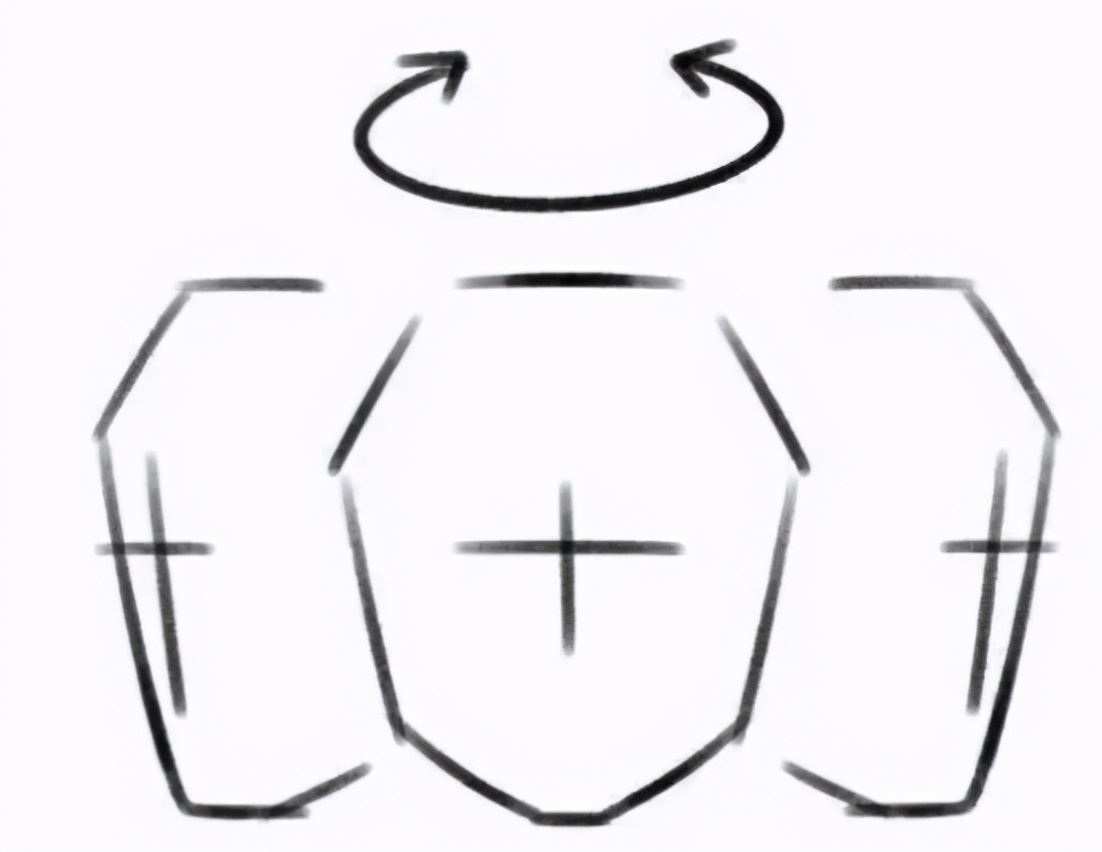 也就说,随着人物所处角度的变换,其五官形态并不是在大小上做出变化,而是在形状上做明显改变。