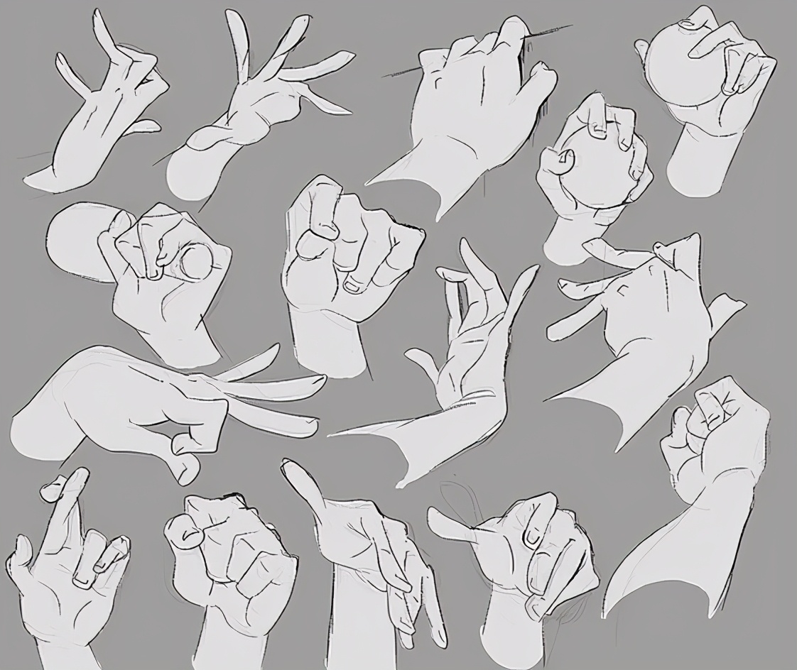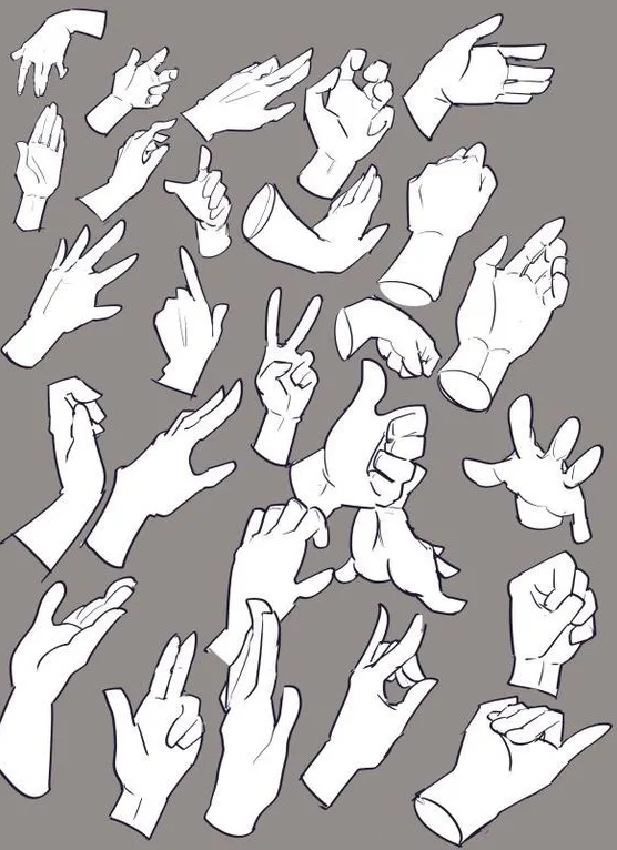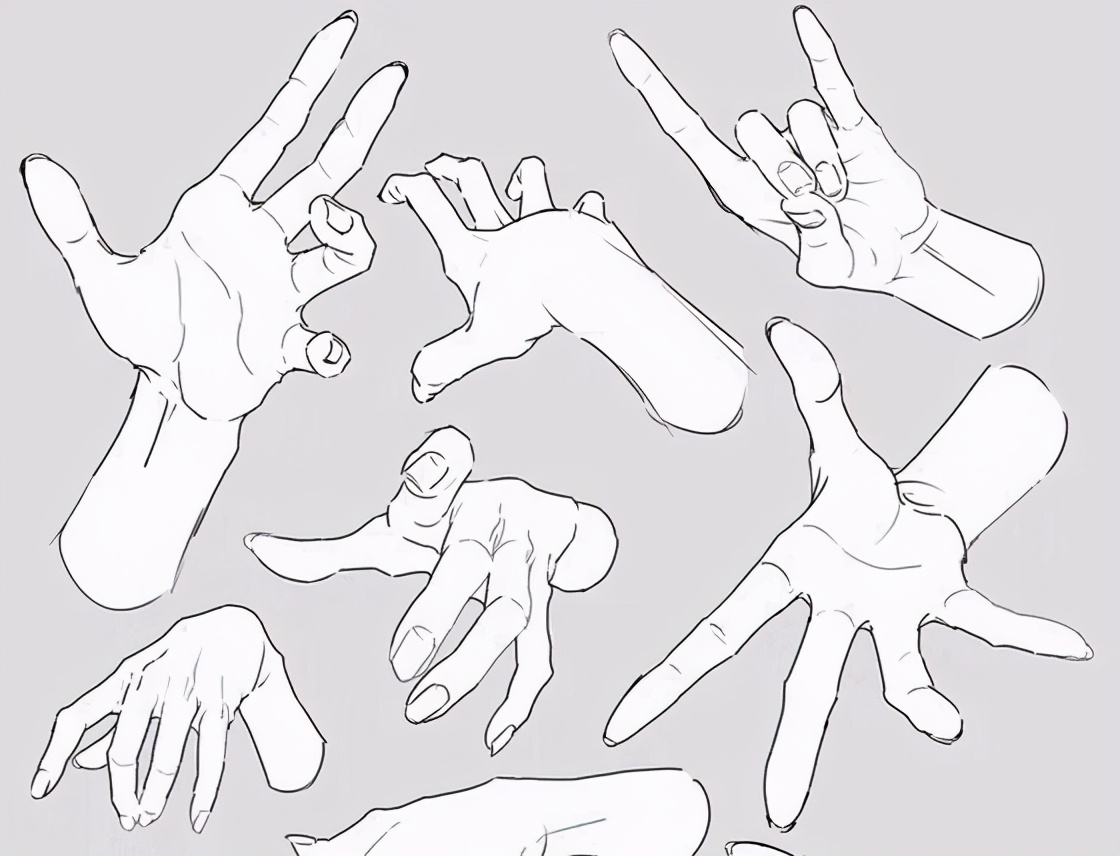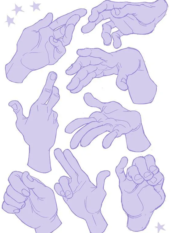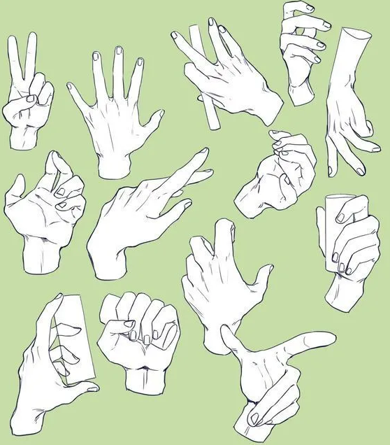 如果要画出比较大的动态建议,拍照片写生多做练习,熟悉一般场景下手的大轮廓形状和透视,可以对手指进行细微调整