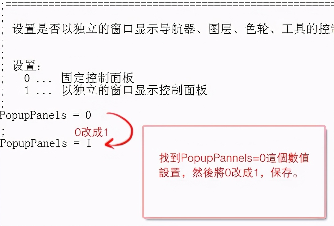 找到PopupPannels=O这个数值设置,然後将0改成1,保存。