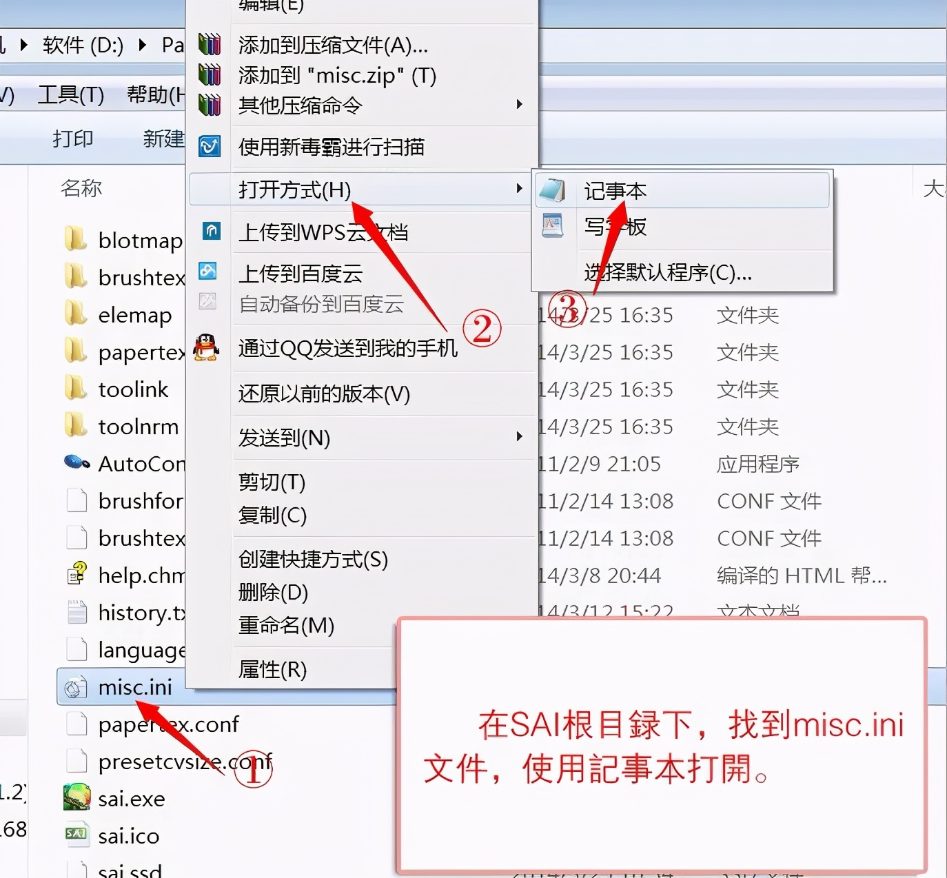 在SAI根目录下,找到misc.ini文件,使用纪事本打開。