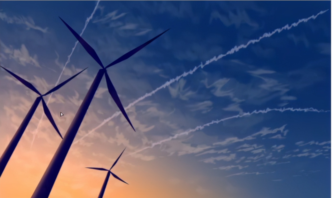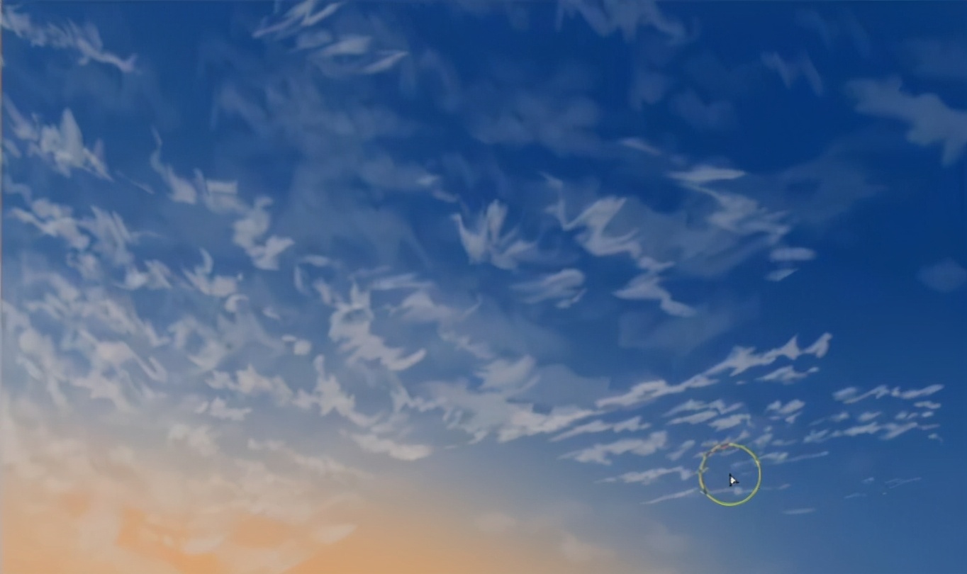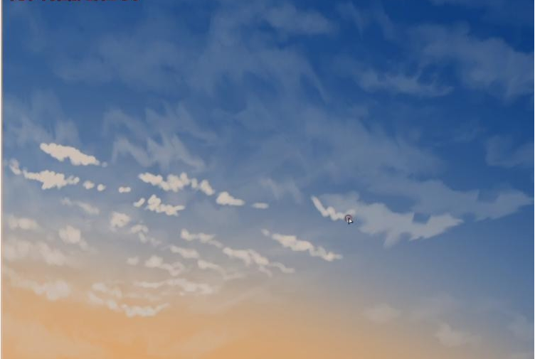 12、在画到这程度的时候,我们要注意透视,天空中的云是可以带来透视的,所以我们要调整一下。