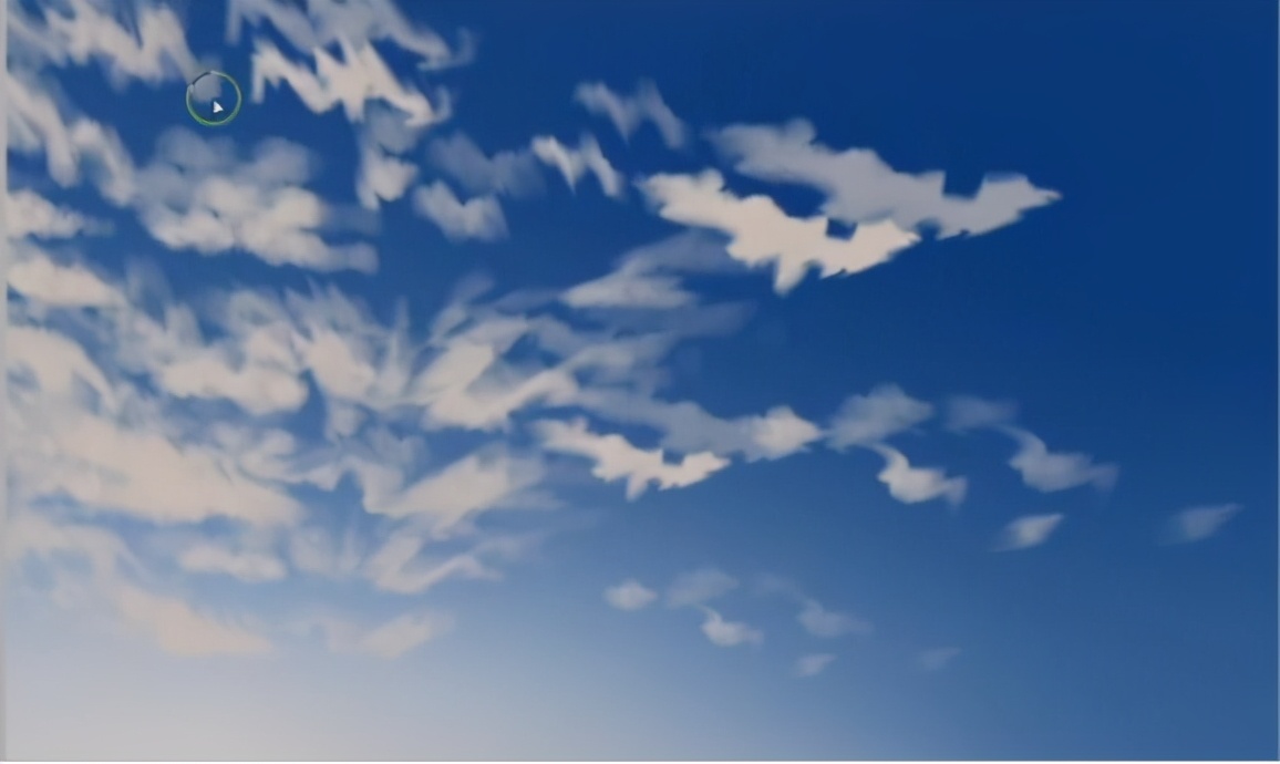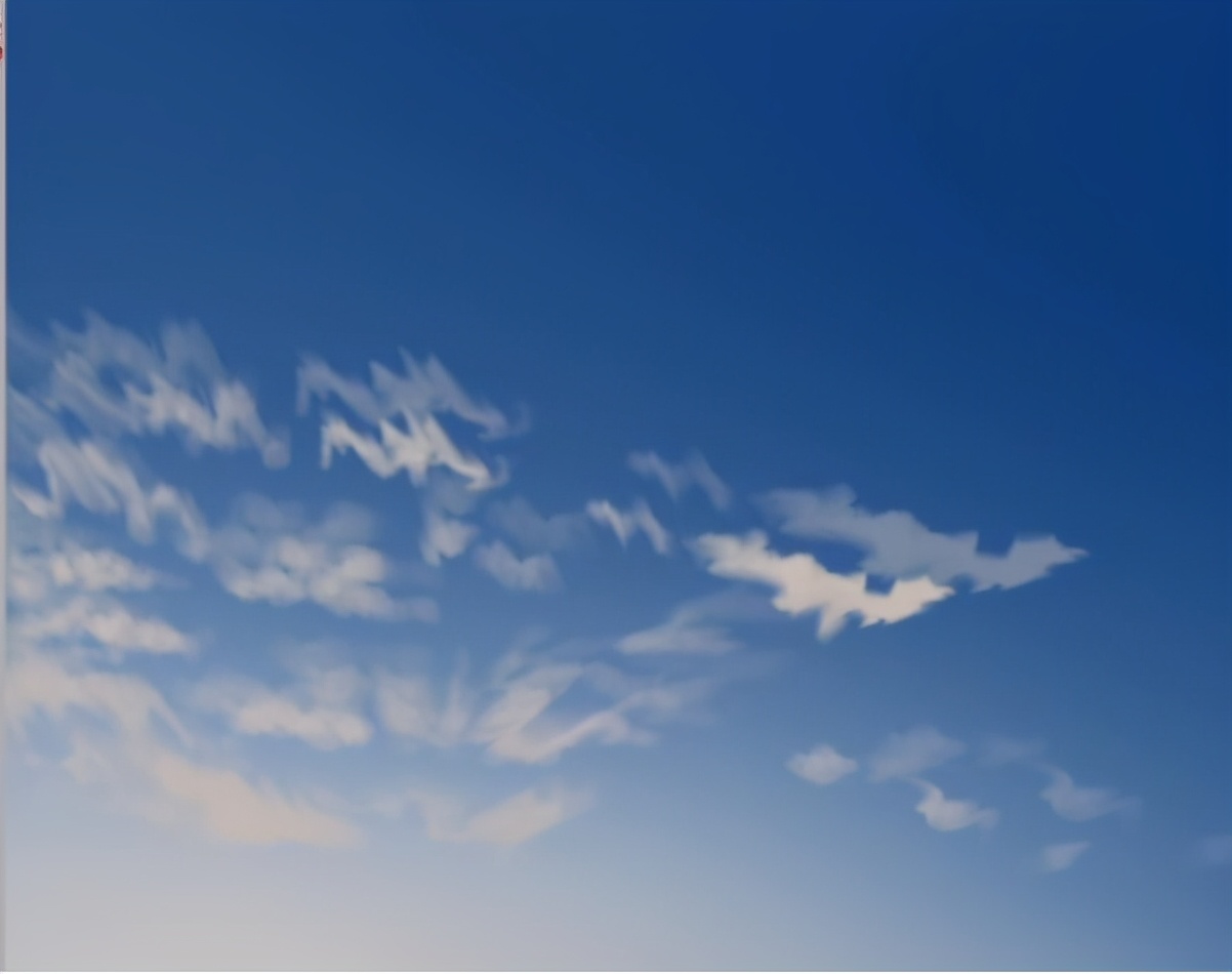 6、将画面中的云画成鱼鳞的样子,参考鱼鳞天。云不必画的很详细,可以慢慢的画,然后用涂抹工具将云做一下效果。