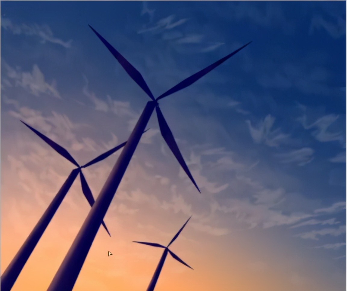 15、将风车的质感做一做,可以用喷枪来画出金属的效果,之后再刷一层环境的光。