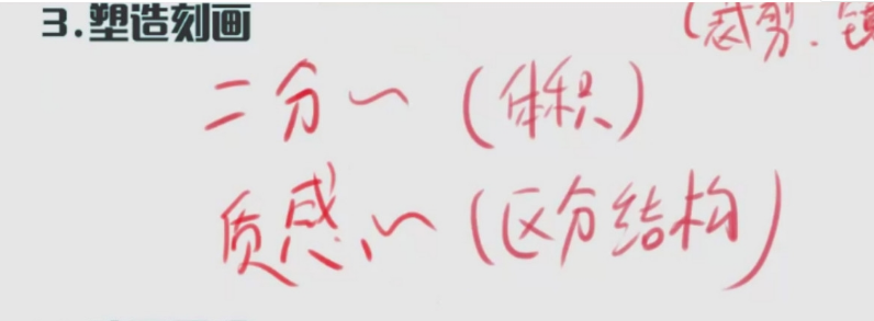(3)塑造刻画:二分法塑造体积(暗面和两面两个面),质感的刻画区分结构。