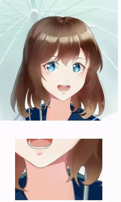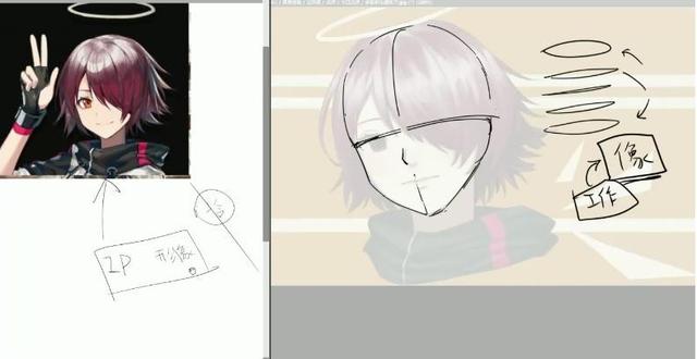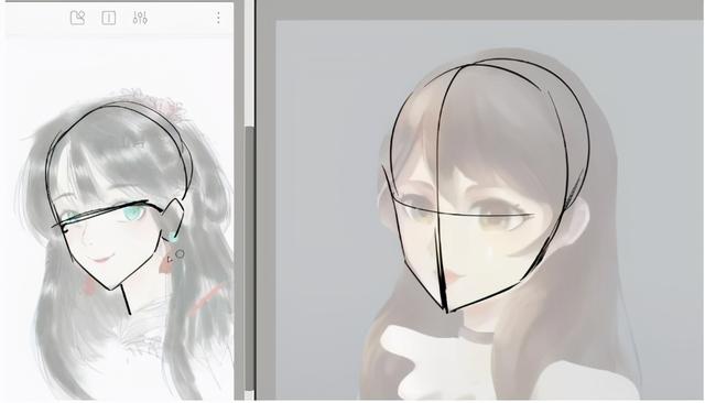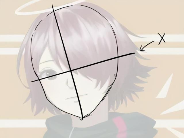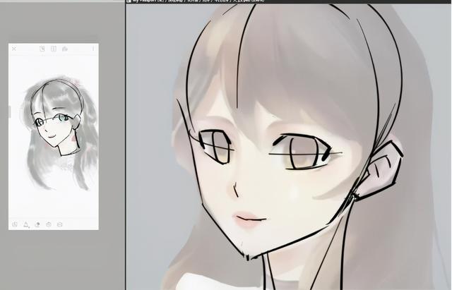 6、脸型看起来也不太对有些肿,要改一下脸型。另外我们要注意到,二次元里女生头发的设计也是有讲究的,头发不会太靠上。