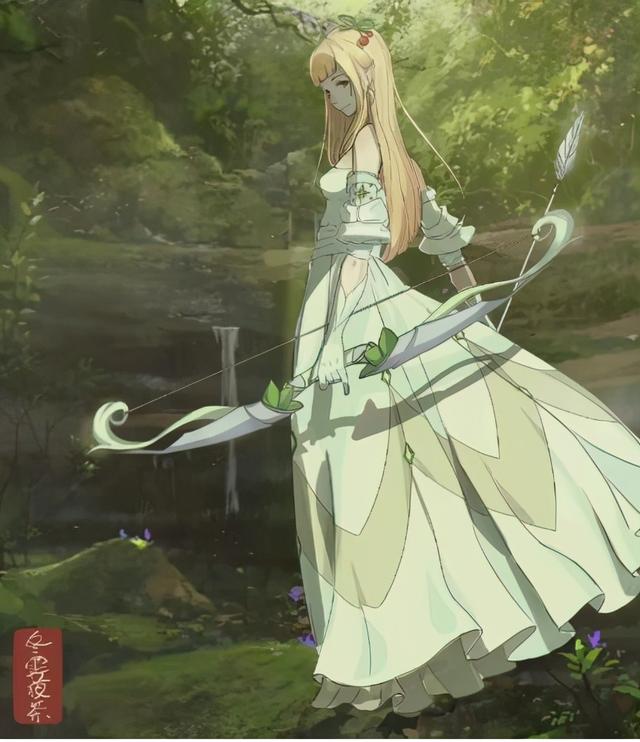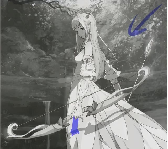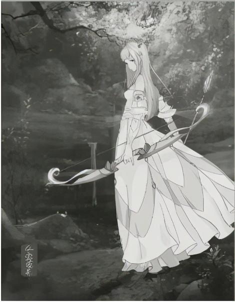 3、手和弓在裙子上是有投影的,这一点要注意到。