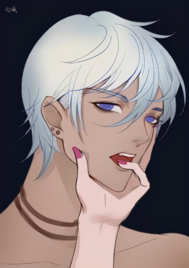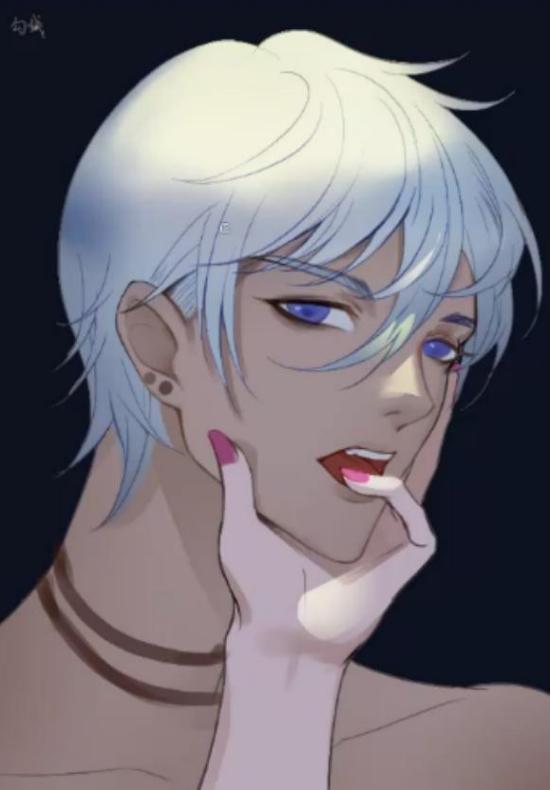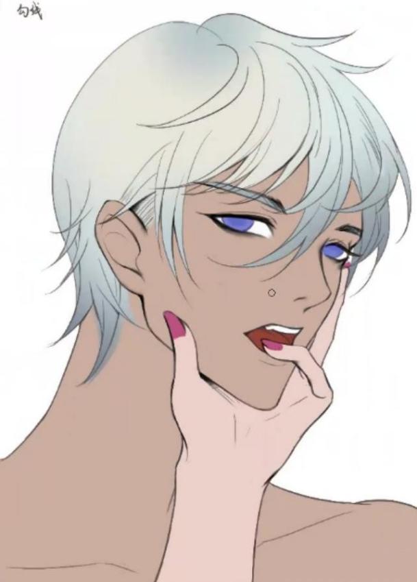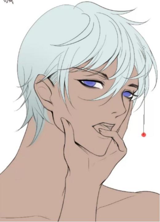 9、这边选中了一个白发、黑皮的小哥哥配色,在给人物上固有色时可以利用拉渐变的方法让颜色更加丰富。