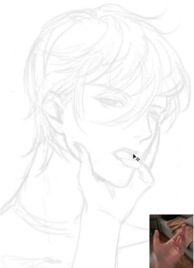 5、大家在不知道怎么画手时,可以摆拍一张自己的手作为参考图,描出自己手的线条,勾线的时候就可以根据描出来的线稿画出自己想要的手啦,如果觉得自己的手不是很好看的话,在勾线的时候也可以适当的美化一下。