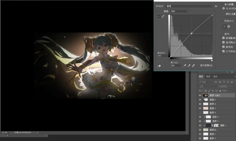 11、使用滤色,叠加光晕,然后使用曲线调整对比得强度。