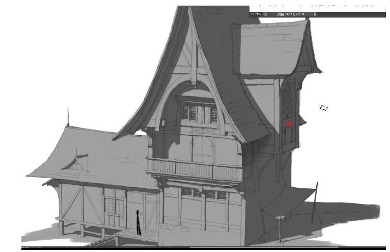 (1)首先画出一个建筑物,分出建筑的暗部。