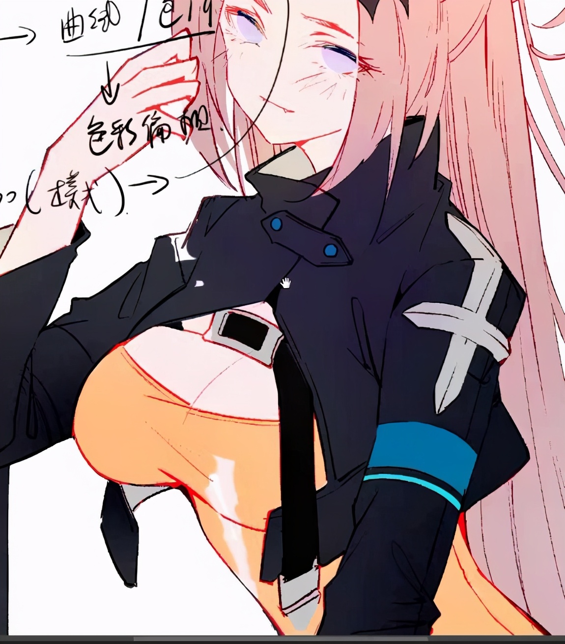 2、线稿不是黑色,是有固有色的,首先填颜色。然后把线稿的调成线性加深,线性加深会根据填色的色相去调整线稿的颜色。