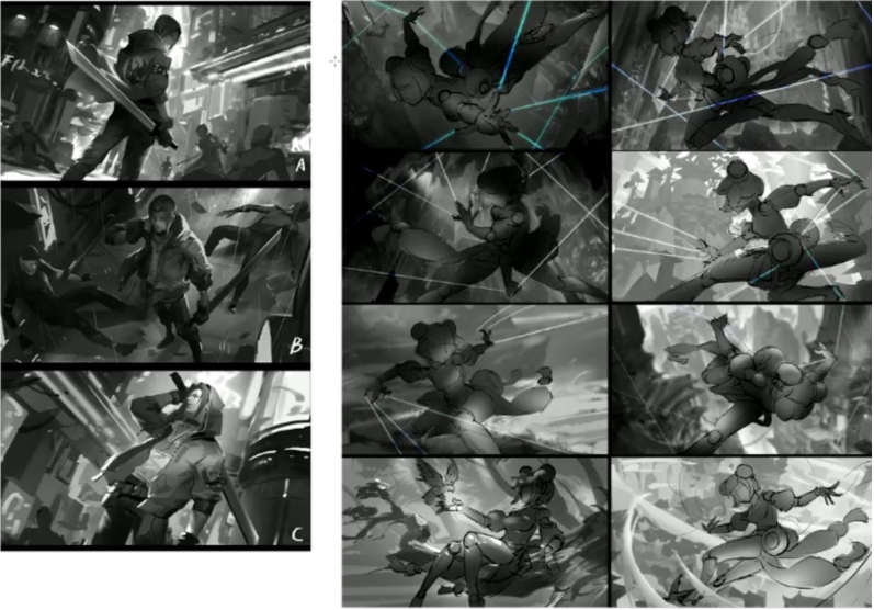 一般是先定动作,然后再定镜头。首先人体基础要扎实才能画出好的动态,然后再做背景。