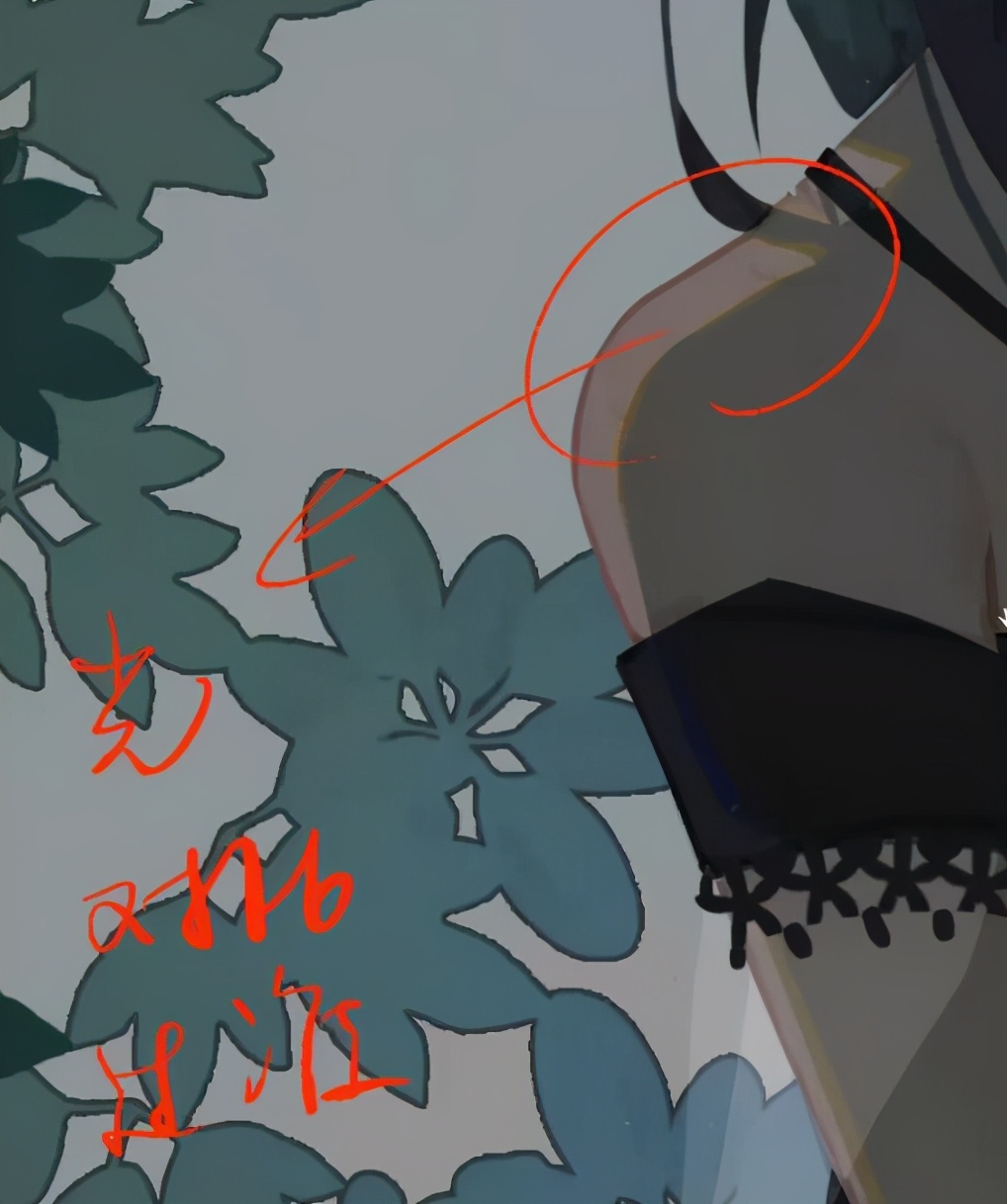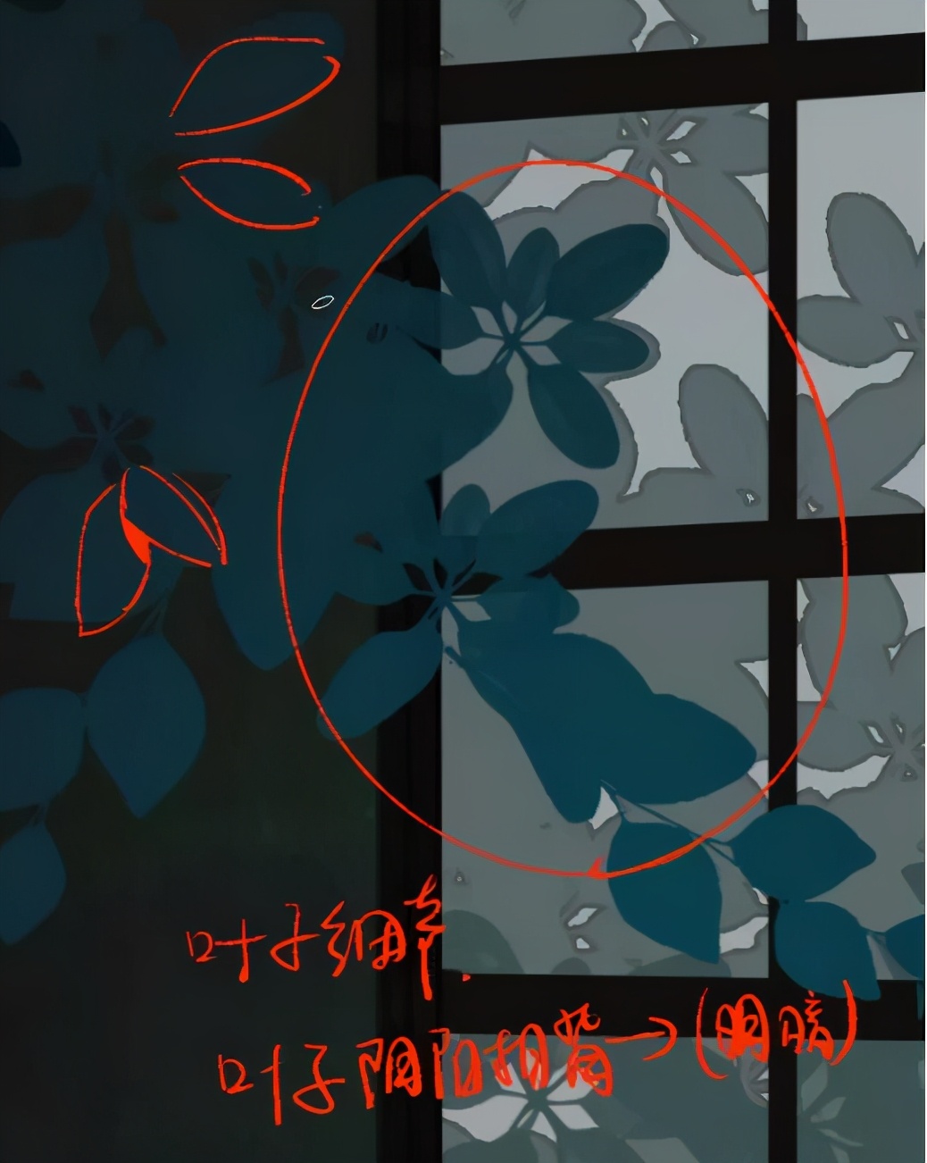 2、比如说叶子,老师的画法,线做剪影,然后区分好叶子的层叠关系,做好投影,然后一些叶子要做一下叶子的阴阳面。这样子叶子才会显得丰富。