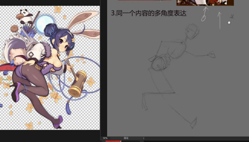 1、今天会讲到如何生动画面,很多同学都很喜欢画那种,呆板的图,不太灵动的。都有人物的画太平,视线太平,缺少空间感,人物动作很僵硬这一些问题出现。