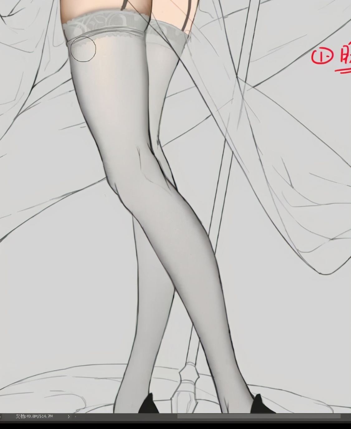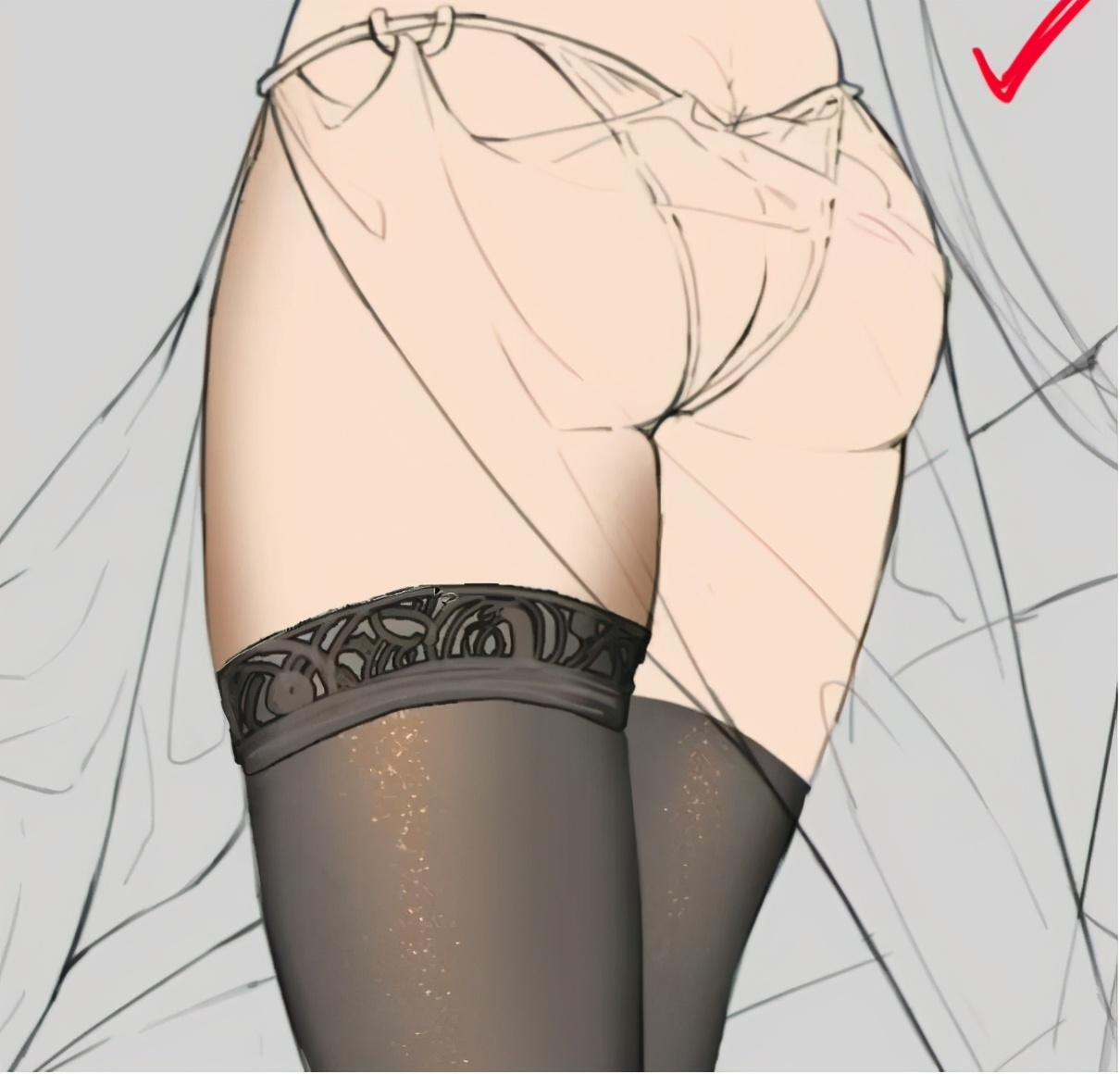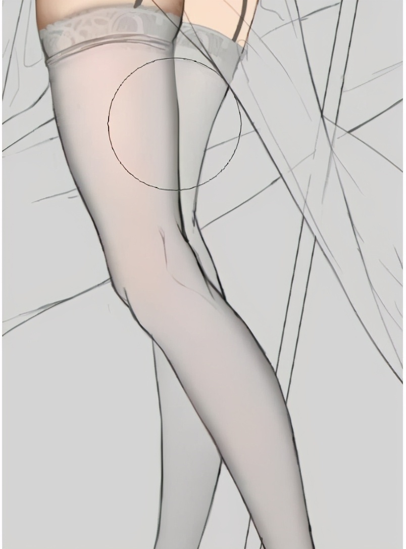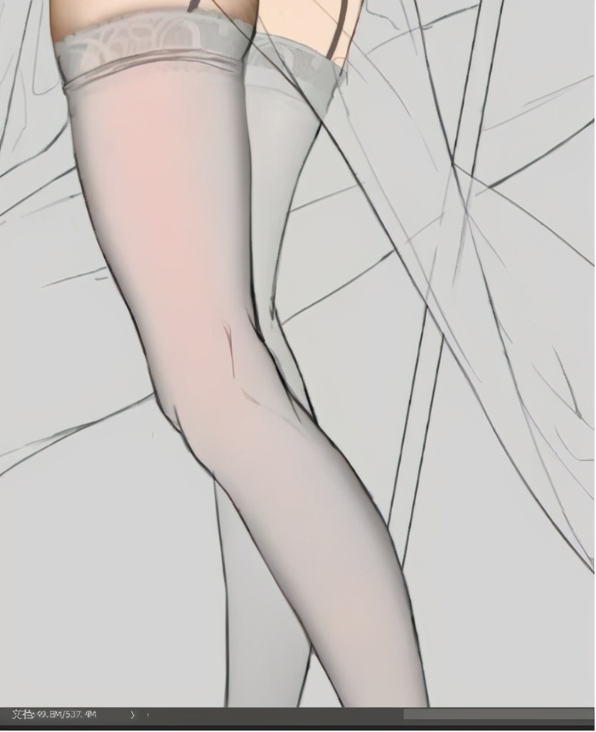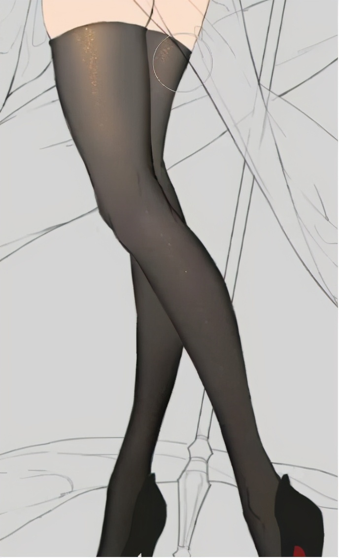 2、黑丝不是纯黑,会有冷暖的区别,因为薄所以会透出肤色。会从灰色变成一些偏橙红的颜色。透视人体画对不是最重要的,而是要画好看。