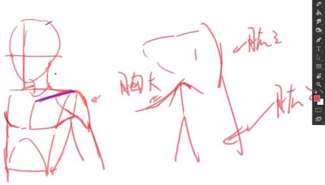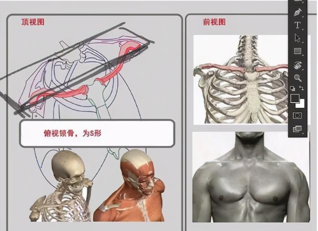 3、锁骨是怎么画的,不同的角度是不一样的形状,锁骨是往里面长的。