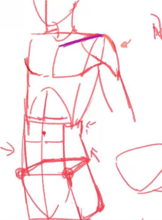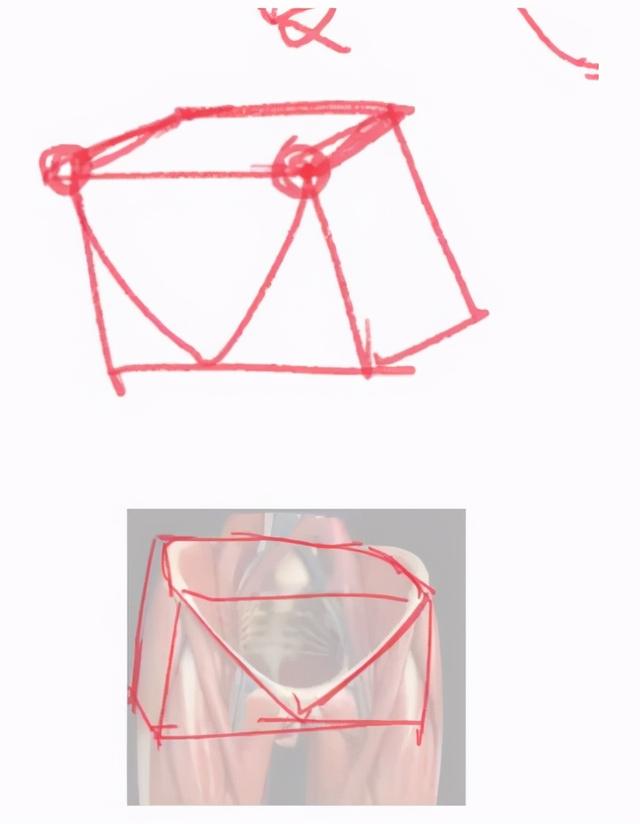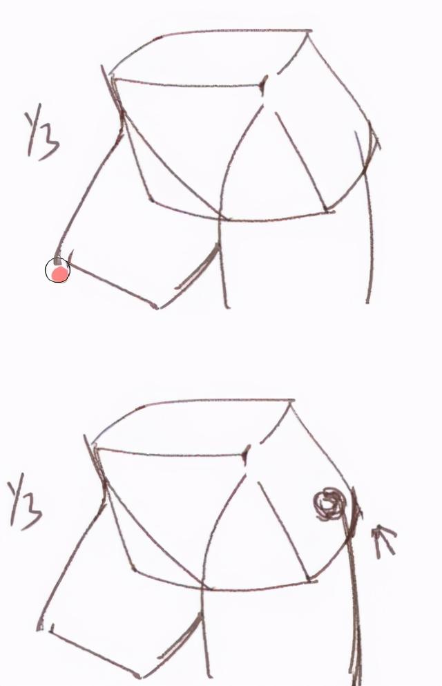 9、大腿体块怎么去画,这个点是大腿长出来的地方。