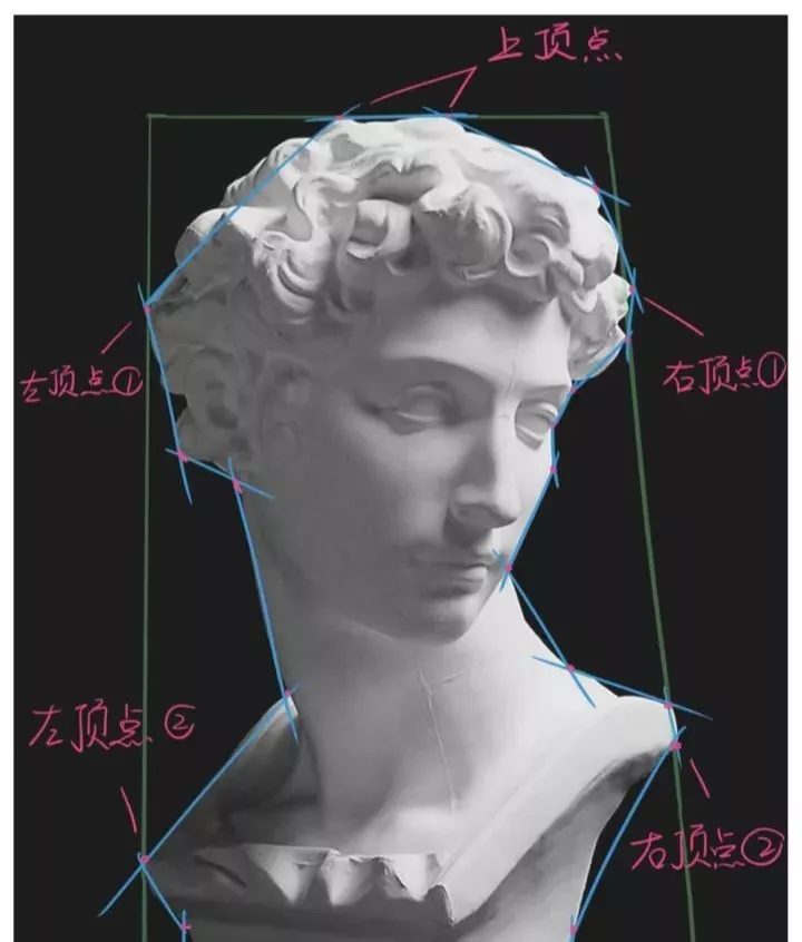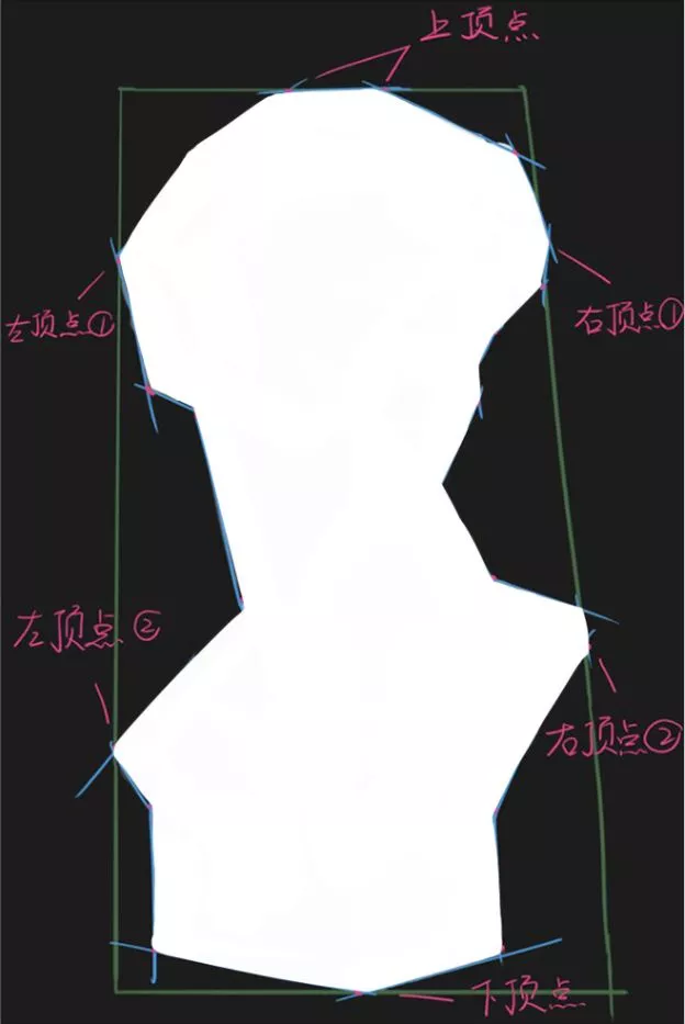 通过观察对象的外轮廓,找到上面比较突出的关键转折点,并用主要用直线连接,这就是用几何形去把握整体造型的概括能力。