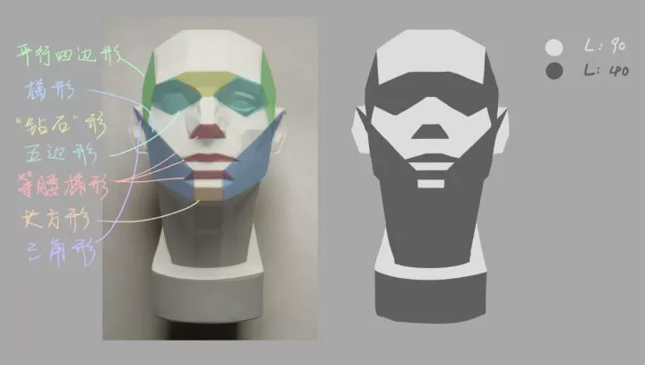 几何型归纳。来确定基本的暗部形状。用几何图形去归纳各个体块,这样是为了加强理解体块的整体性,先抛开琐碎的细节,增强记忆。